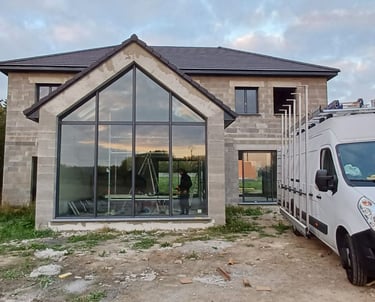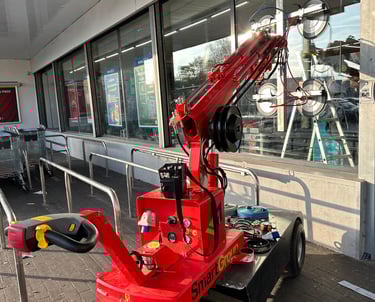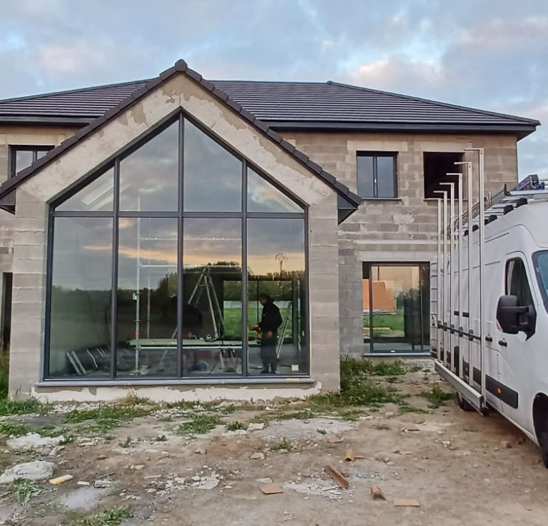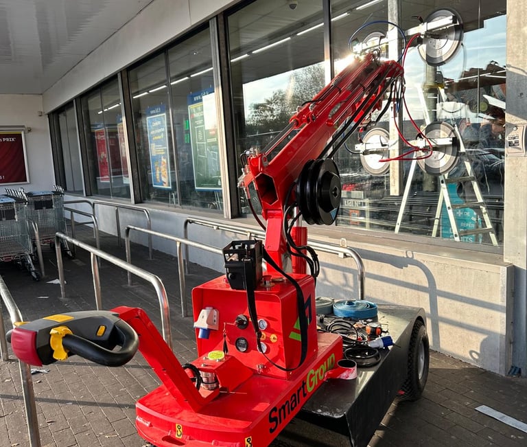 Nous utilisons un robot de pose de vitrage pour installer avec précision et sécurité les vitres lourdes et les grandes surfaces.