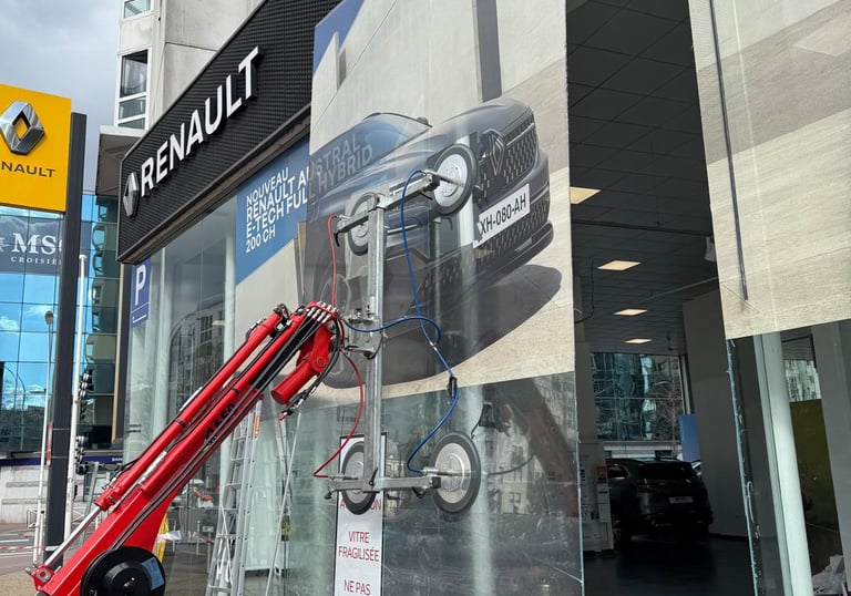 Pose de double vitrage, vitrines de magasins et miroirs sur mesure avec équipement professionnel.